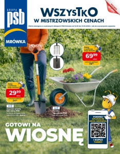 Taczka ogrodowa PSB poj. 80 l, waga 7 kg Szpadel prosty lub ostry PSB w ofercie dostępne widły ogrodnicze PSB - 39,99 zł Cena z aplikacją Moja Mrówka cena bez aplikacji 79 99 69 99 zł/szt. Cena z aplikacją Moja Mrówka cena bez aplikacji 34 99 29 99 zł/szt. W MISTRZOWSKICH CENACH POBIERZ APLIKACJĘ MOJA MRÓWKA I KUPUJ TANIEJ Oferta dostępna w wybranych sklepach PSB Mrówka od 12.03 do 21.03.2026 r. lub do wyczerpania zapasów. GOTOWI NA WIOSNĘ